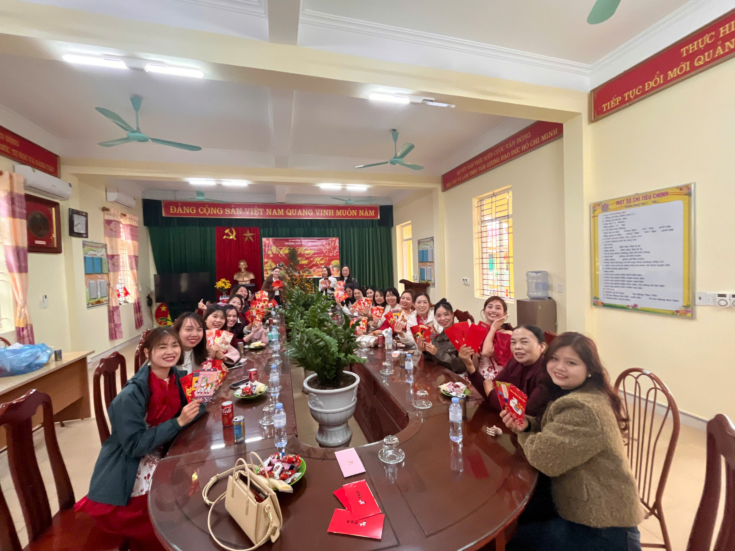 Nhà trường đã tổ chức các hoạt động gặp mặt đầu xuân trong không khí ấm áp, thân tình như: liên hoan bánh kẹo đầu năm, trao lì xì may mắn, tạo niềm vui, sự hứng khởi và động lực làm việc cho tập thể cán bộ, giáo viên, nhân viên cũng như mang đến cho các bé những trải nghiệm vui tươi trong ngày đầu năm mới.